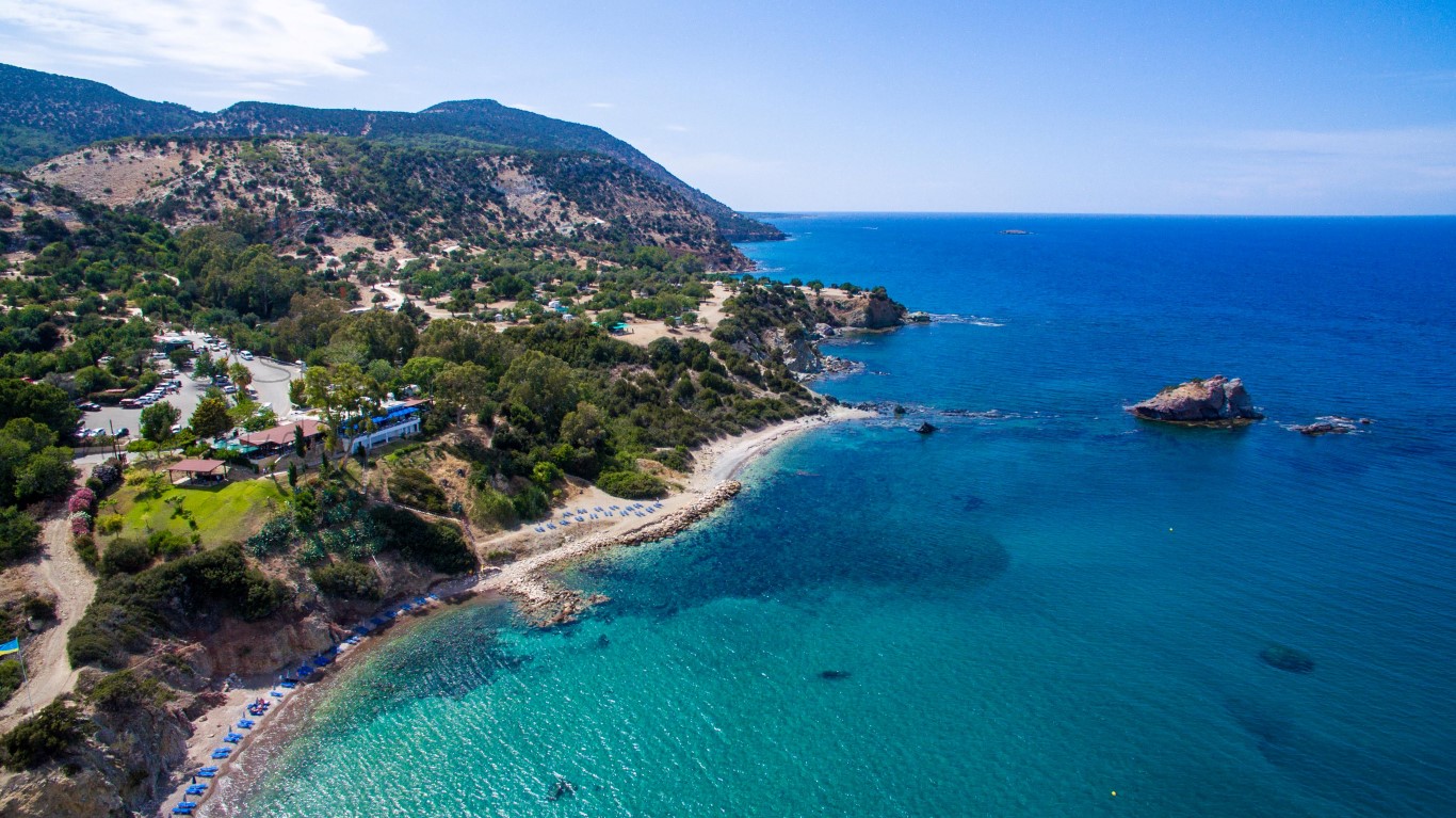 The area of Polis Chrysochous is located approximately 24 miles north west of Paphos at the top of Cyprus in the foothills of the Troodos mountain range and next to the beautiful Akamas region. It remains a beautiful, quiet and unspoilt area with miles of deserted sand beaches, stunning scenery, plus plenty of small hotels, apartments and lovely private villas for a relaxing holiday, and there is a great selection of restaurants and tavernas, many of which specialise in local caught fish. It is a great base for exploring the Akamas Peninsular, the small towns of Polis and Latchi (Latsi) and the many villages in the Troodos mountains but still only a 30-40 minute drive from the bustling resort of Paphos.