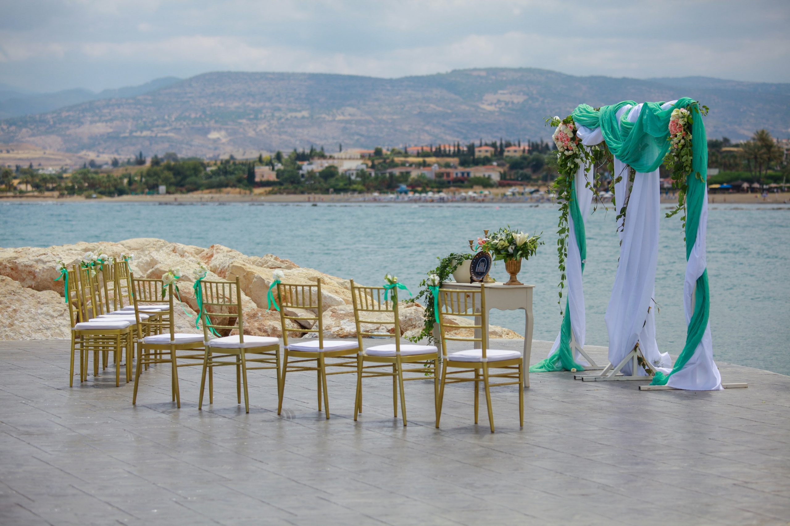 The Polis area is blessed with some fabulous beachside villas so you can have a wedding ceremony in the gardens of your villa or on the beach by the villa, and if you wish we can also arrange a catered reception at the villa too, or we can arrange it at one of the many local restaurants in the area so you have plenty of options.. The photos below are of a lovely private beach wedding by Sandy Beach Villas in Argaka which is a short distance from Latchi.