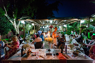 Viklari is a world famous and unique restaurant located right in the centre of the Akamas Peninsular – a protected nature reserve. It is situated in an elevated position overlooking famous Lara Bay where rare turtles hatch every year. The roads on the Akamas are rough, so the only form of transport we can use to get you and your guests to the restaurant is a fun bus as they are built for rough treatment! This is a great location for a relaxed and very informal wedding meal. The venue is built from local stone and has a range of long stone tables for guests situated underneath a huge grape vine, and surrounded by the flower garden and vegetable fields. The food is fabulous and very simple, a choice of either barbecued pork or chicken souvla served with fresh Greek salad, village bread, and either huge chips or jacket potatoes. The chips are fabulous and all the meat is cooked on a massive wood fire at the front of the restaurant. There is a bar so wine, beer and spirits are available. The restaurant is only open in the afternoon, so it not possible to stay there for the evening. If you want something a little bit different from a formal reception venue then this is a great choice.