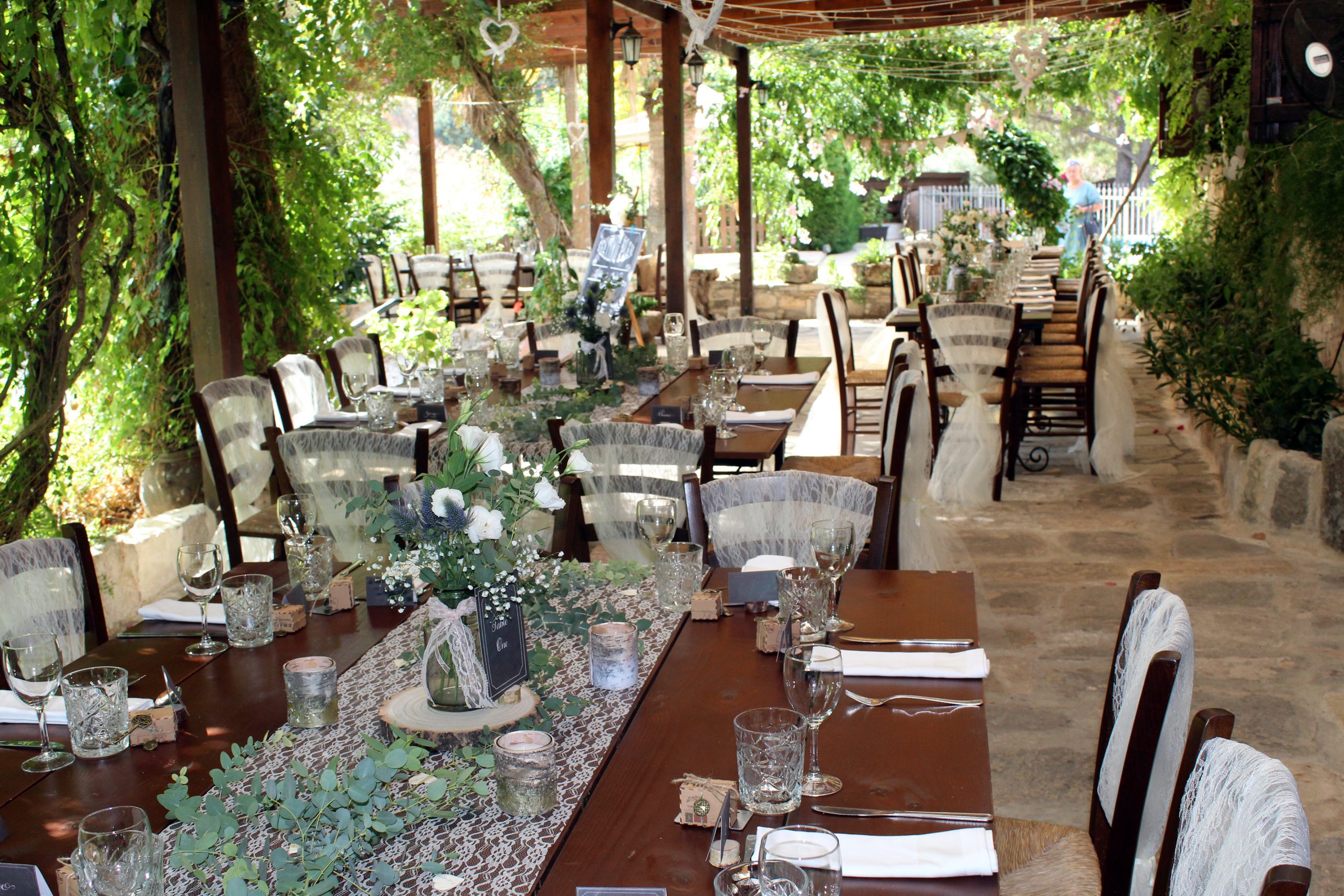 You can choose  to have either a civil ceremony or Anglican church ceremony,  both of which can take place in the traditional Cypriot vine-covered indoor courtyard  which is ideal for smaller wedding parties, or in the beautiful scenic and shady eucalyptus garden set against a backdrop of the Troodos mountains which is perfect for those larger wedding parties.